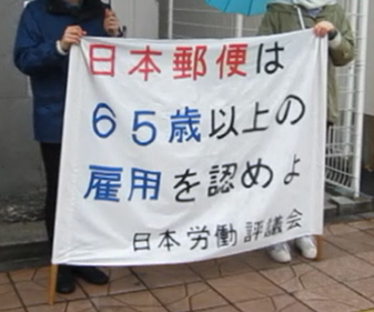 日本労働評議会(略称:労評)は、この間、日本郵政グループである日本郵便株式会社における「非正規雇用65歳定年制」の撤廃を求めて、会社との団体交渉や宣伝活動等に取り組んできました。
