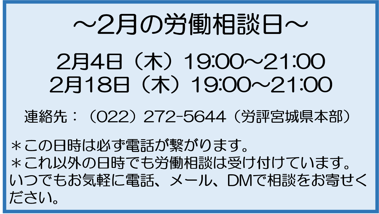 2月の労働相談日のお知らせ